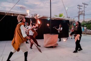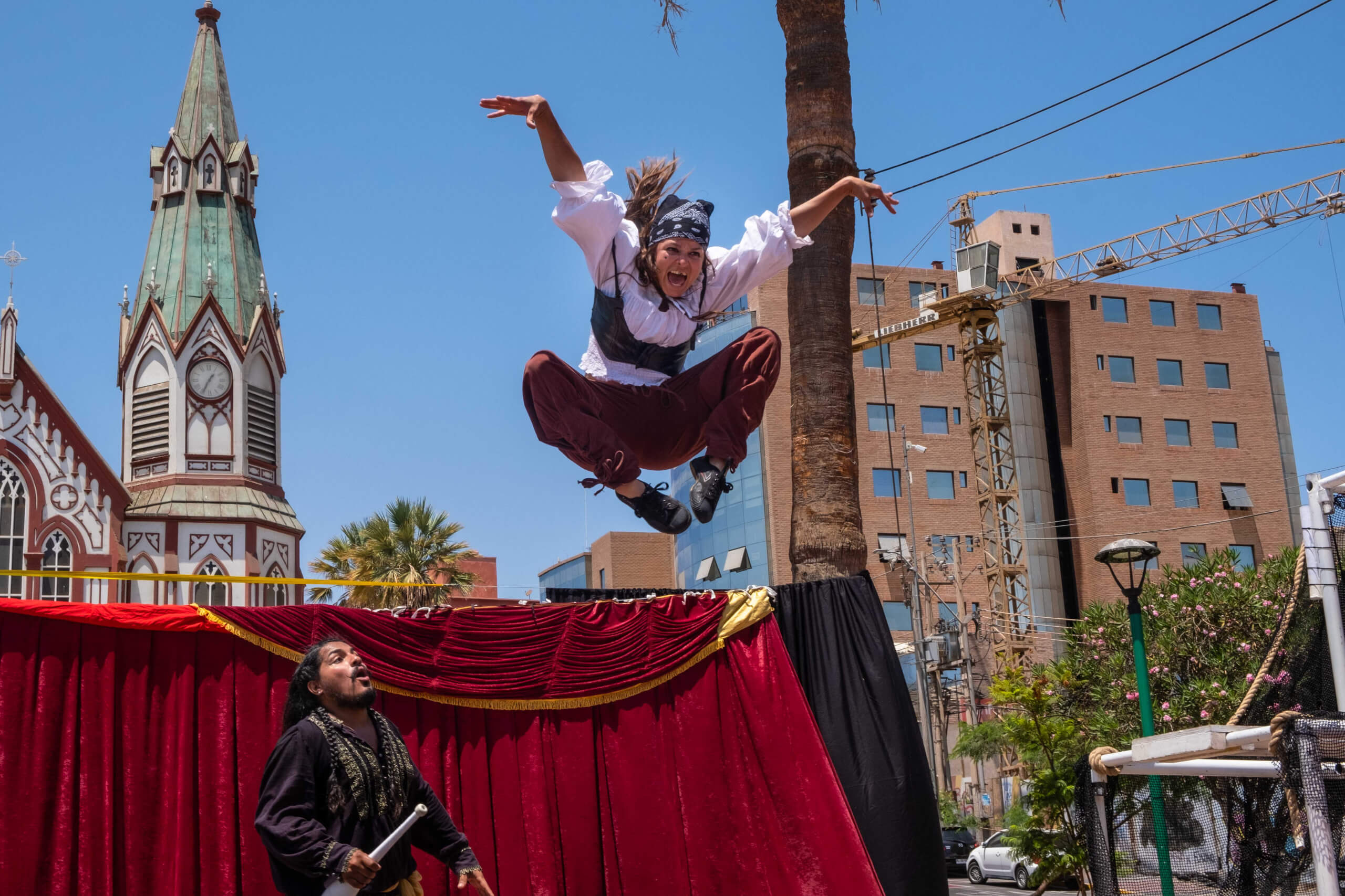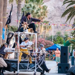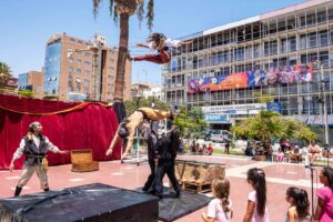 Espectáculo de Circo Contemporáneo que relata la historia de diversos Piratas y Corsarios que durante más de un siglo llegaron a saquear y arrebatar al puerto de Arica la plata que llegaba desde Potosí (Bolivia) y a robar el tan preciado vino dulce que se producía en la zona de los Valles de Codpa y Chaca, sembrando el terror de los lugareños de la época. El montaje se va entretejiendo en la fantasía de cualquier historia de aventuras piratas que abundaban en América entre los siglos XVII y XVIII. Con diversas destrezas físicas como las acrobacias, el malabar, el mástil chino, la teatralidad y la comicidad se va relatando cómo los piratas acostumbrados a saquear todo lo que tenían a su paso de pronto se encuentran con un pueblo cansado de tanta injusticia y destrucción que se organiza para defender sus riquezas y su territorio.