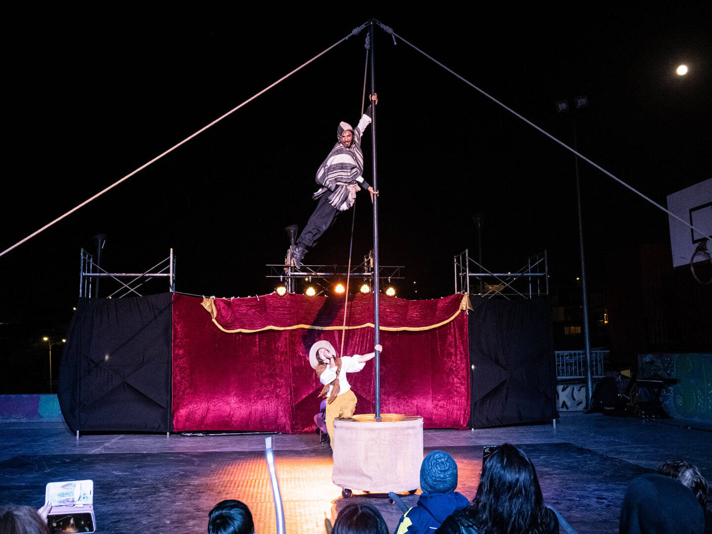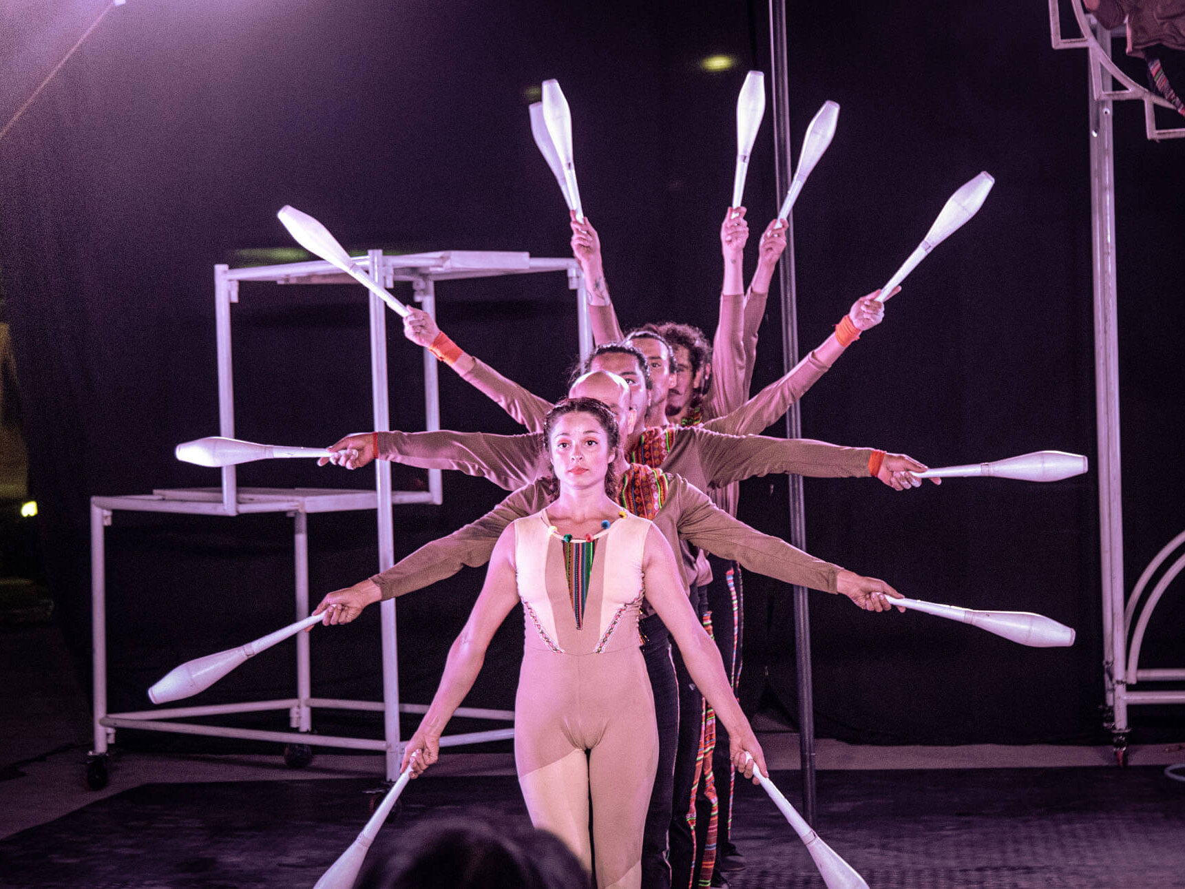 Espectáculo de Circo Contemporáneo que a través de distintas disciplinas y técnicas de las artes circenses complementadas con la danza, el teatro y la música en vivo, aborda la temática de la Cosmovisión Andina reflejada en el simbolismo milenario de la Chakana, poniendo en valor su misticismo y geometría sagrada, que trasciende en la espiritualidad, ritualidad, festividades y costumbres de los pueblos de los Andes Centrales de Sudamérica. Con un lenguaje cercano deja de manifiesto la identidad y nuestras raíces descolonizadas, que toda la familia puede disfrutar.