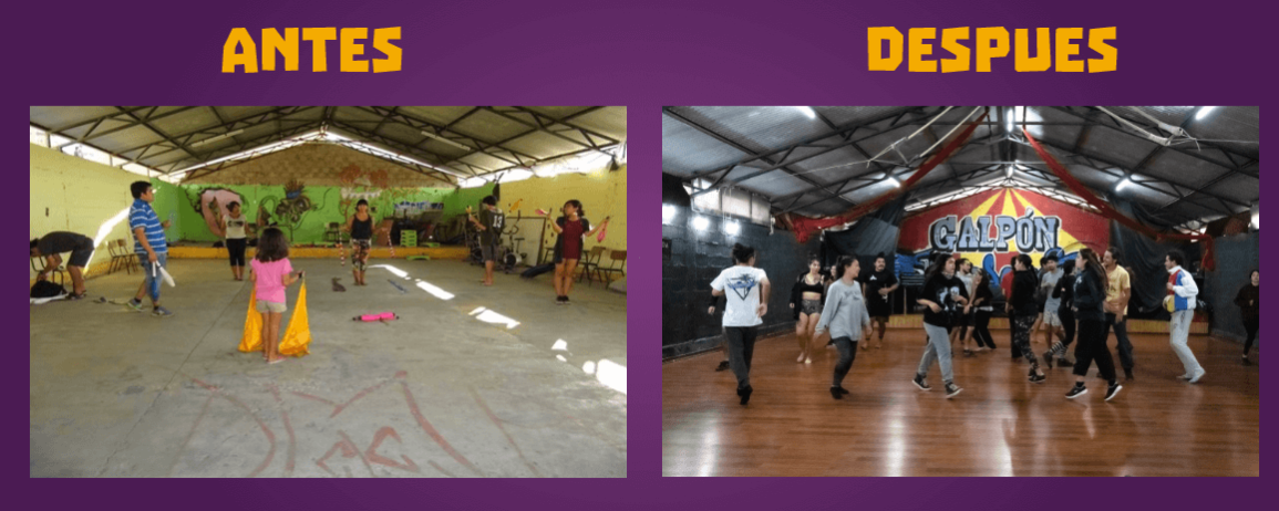 El 2017, logramos formalizar nuestra organización con la obtención de la Personalidad Jurídica, hecho que ayudó a la gestión del espacio. En el mismo año se adjudicó un proyecto de mejoramiento del lugar con la empresa privada, que fue el empujón para lograr fortalecer la programación habitual, que hasta la fecha se mantiene, con diversas actividades circenses, de otras áreas de las artes escénicas y otras manifestaciones artísticas o de desarrollo humano y comunitario: talleres, espectáculos, seminarios, conversatorios, encuentros, ensayos, entrenamientos, montajes, festivales, exhibiciones, etc. para distintos rangos etarios y sociales.